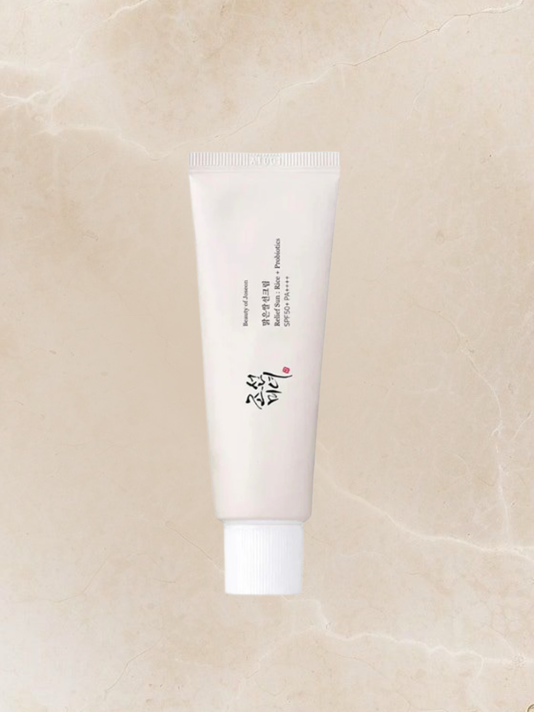 La Beauty Of Joseon Relief Sun : Rice + Probiotics SPF50+ PA++++ est une crème solaire chimique qui s'applique délicatement sur la peau et qui est formulée avec des ingrédients apaisants et éclaircissants. Elle possède un puissant écran UV SPF50+ PA++++ à large spectre et est enrichie de 30 % d'extrait de riz et de probiotiques de grains qui hydratent et nourrissent la peau en profondeur. Elle est formulée avec des ingrédients certifiés green par l'EWG et des ingrédients apaisants pour la peau, ce qui en fait un produit adapté pour les peaux sensibles. Cette crème hydratante légère adhère délicatement à la peau et pénètre rapidement sans laisser de traces blanches.